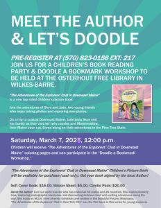 Join us in the Children’s Department on Saturday, March 7th at 12PM to meet children’s author Lori Floyd! Lori will be reading her newest book, The Adventures of the Explorers’ Club in Downeast Maine. There will also be a craft to accompany the story.