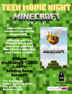 Join us for an epic adventure on the big screen with “A Minecraft Movie”! Whether you’re a Creeper fan or just love pixel powered fun, this is a night you won’t want to miss!